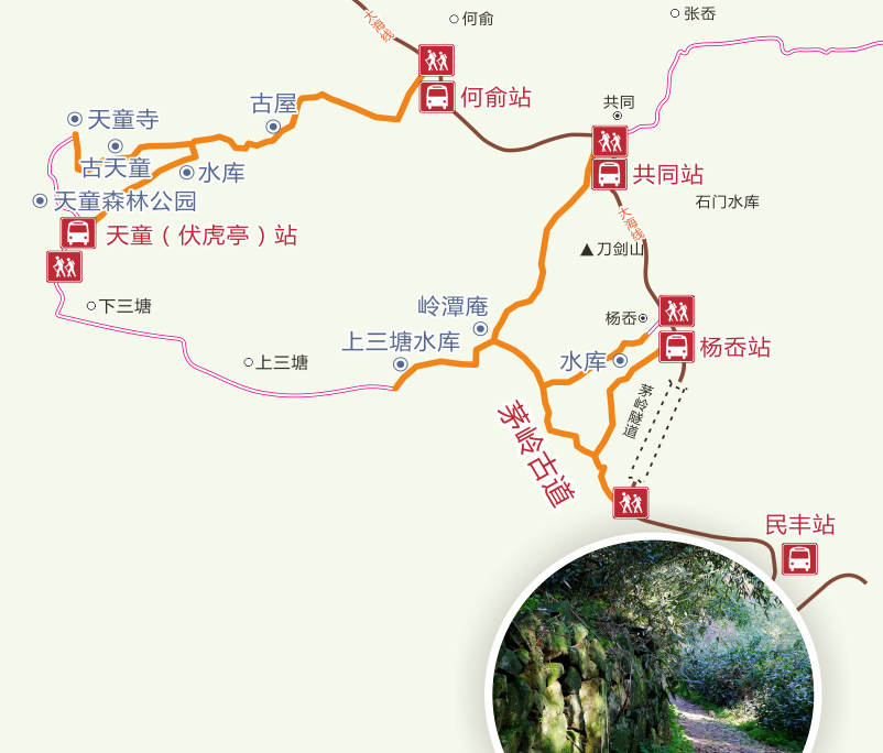 天童寺入口:162、173、175路公交车天童(伏虎亭)站下车